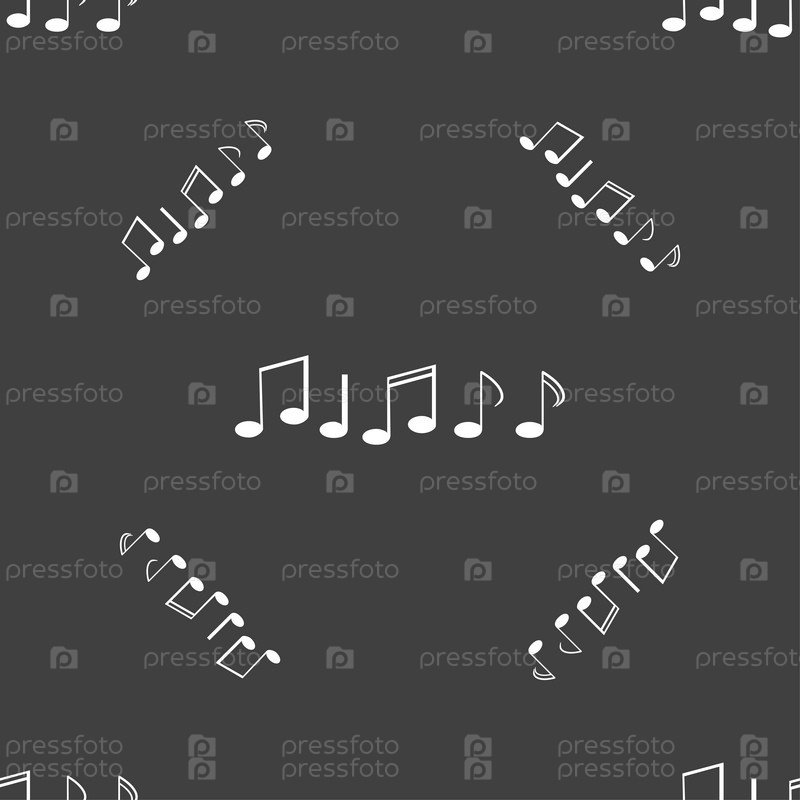Музыкальным символом. Бесшовный узор на сером фоне. Вектор