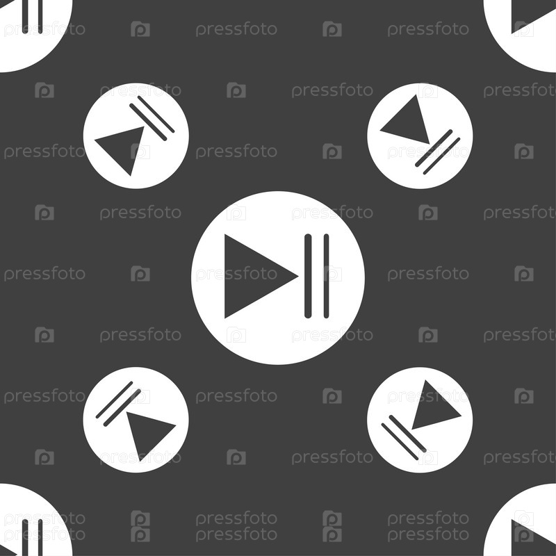 Играть значок кнопки. Бесшовный узор на сером фоне. Вектор