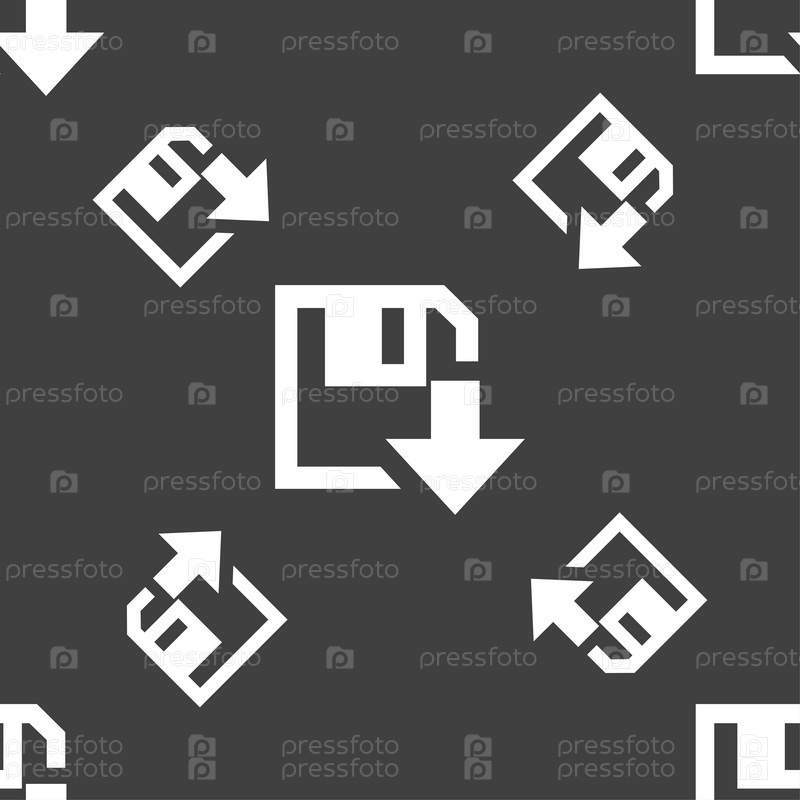 Значок дискеты. Плоский современный дизайн. Бесшовный узор на сером фоне. Вектор