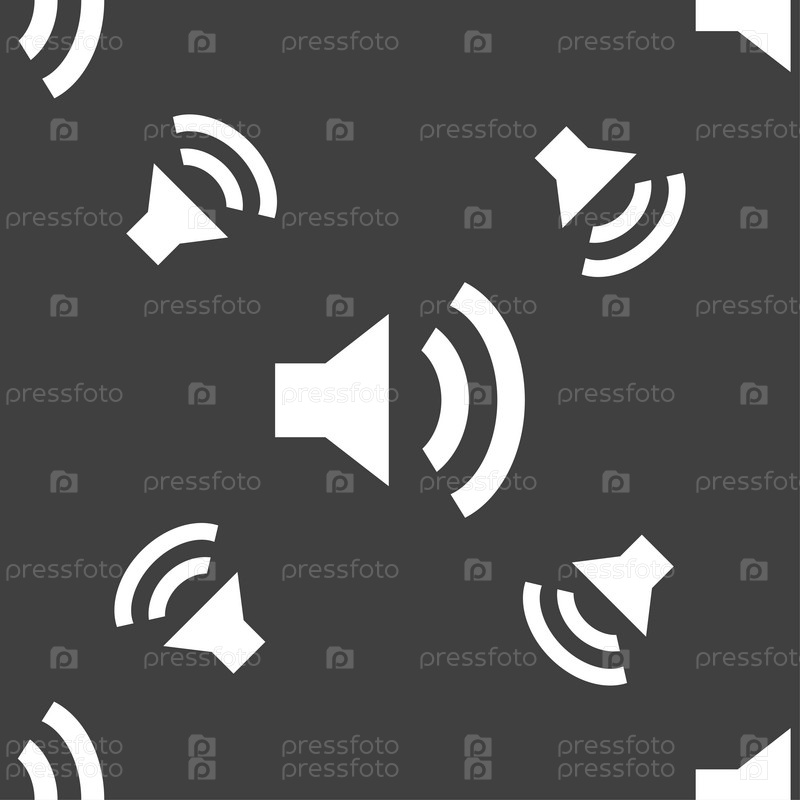 Значок знак громкости динамика. Символ звука. Бесшовный узор на сером фоне. Вектор