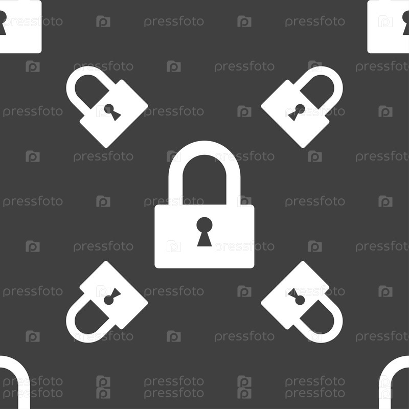 Значок замка знак. Локера символ. Бесшовный узор на сером фоне. Вектор