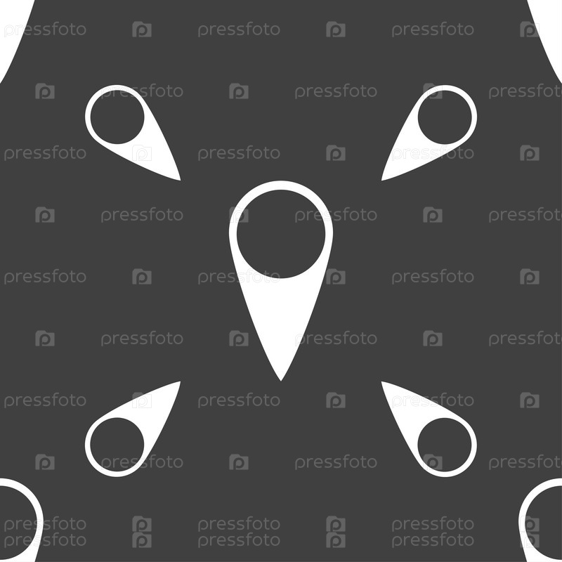 Иконка указателя на карте. GPS Местоположение символа. Бесшовный узор на сером фоне. Вектор