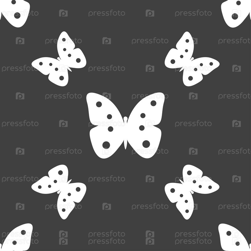 Бабочка знак значок. насекомых символ. Бесшовный узор на сером фоне. Вектор