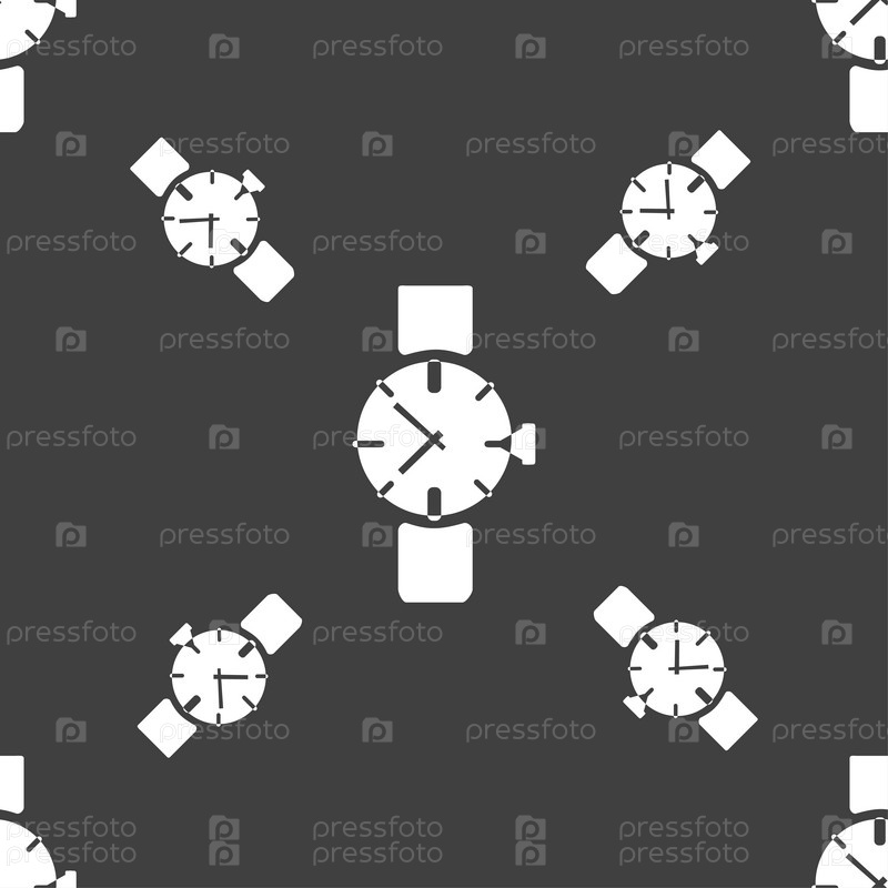 Часы значок символа. Бесшовный узор на сером фоне. Вектор
