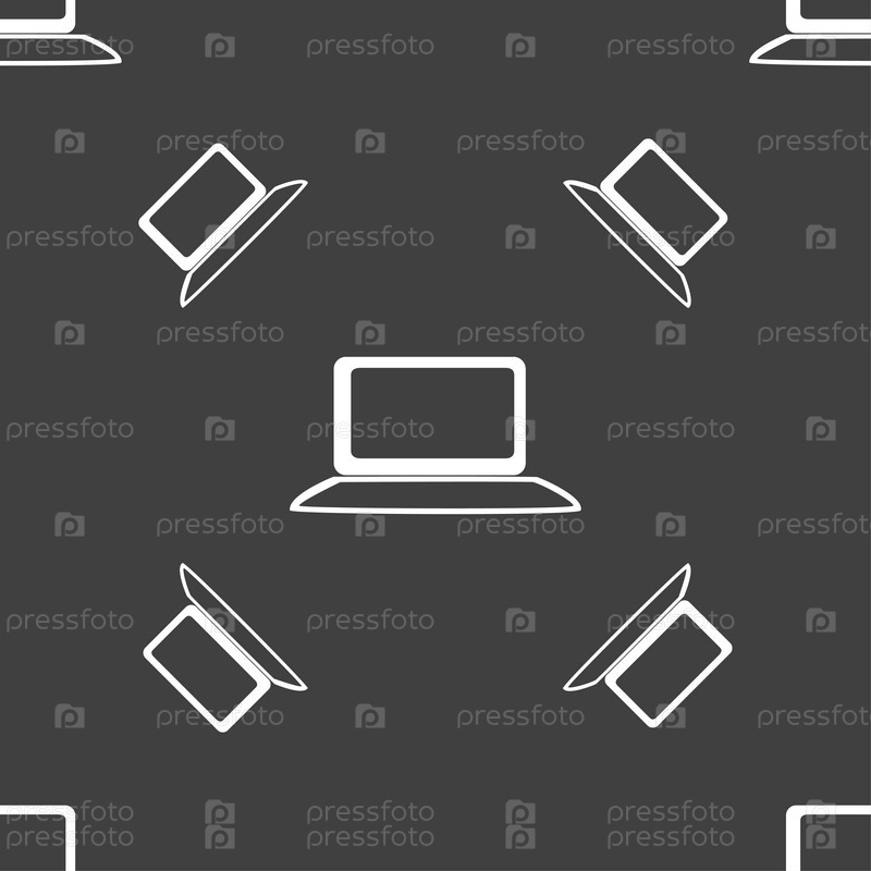 Иконка ноутбук знак. Ноутбук с символом графа. Мониторинг. Бесшовный узор на сером фоне. Вектор