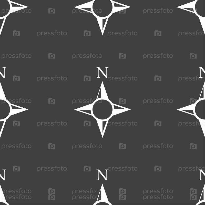 Иконка Компас знак. навигации символ. Бесшовный узор на сером фоне. Вектор