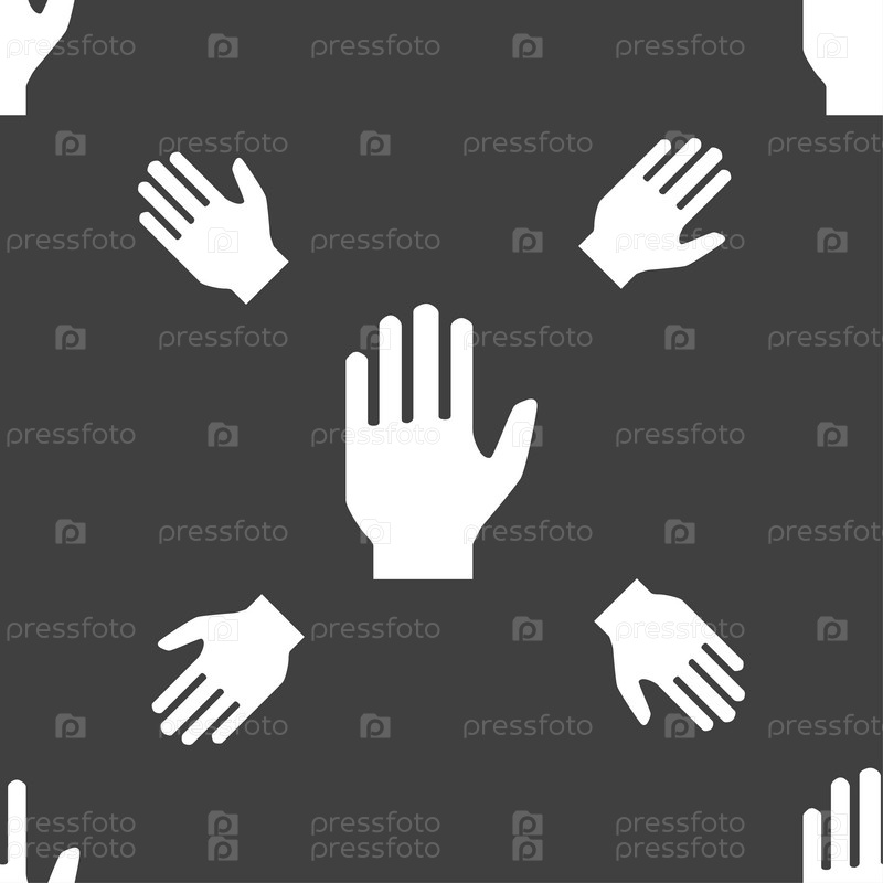 Значок печати знак руки. Остановите символ. Бесшовный узор на сером фоне. Вектор