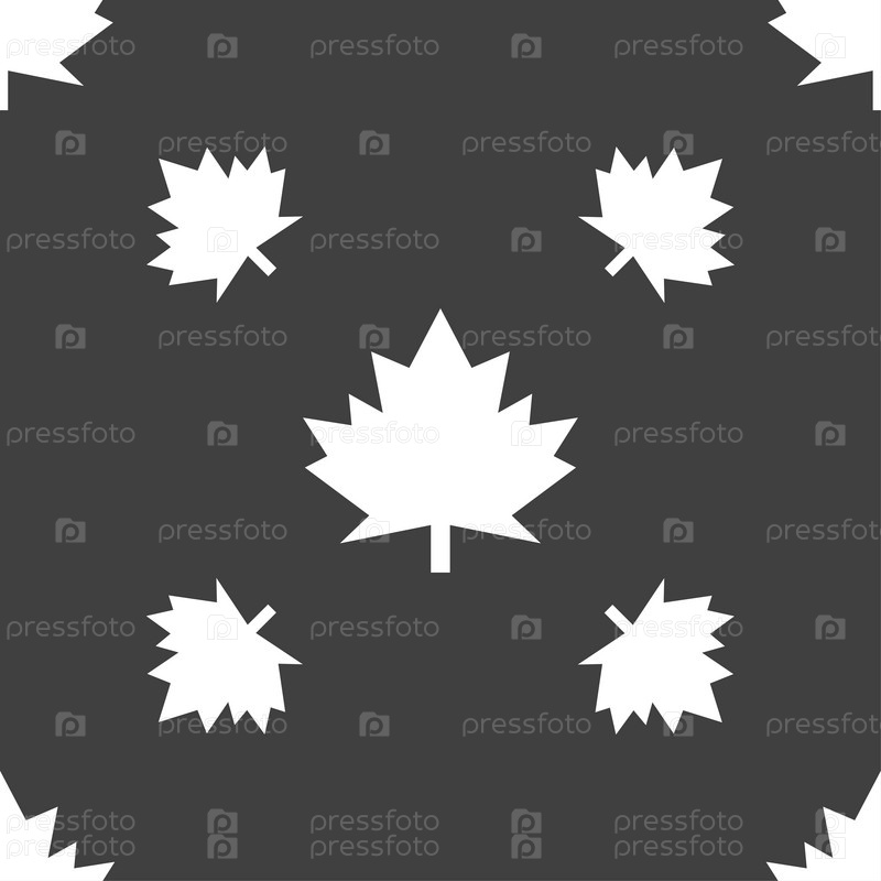 Кленовый лист значок. Бесшовный узор на сером фоне. Вектор