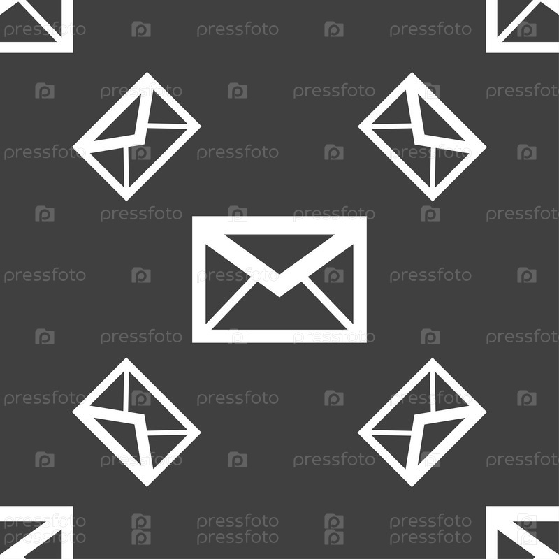 Значок «Почта». Символ конверта. Сообщение знак. кнопка навигации. Бесшовный узор на сером фоне. Вектор