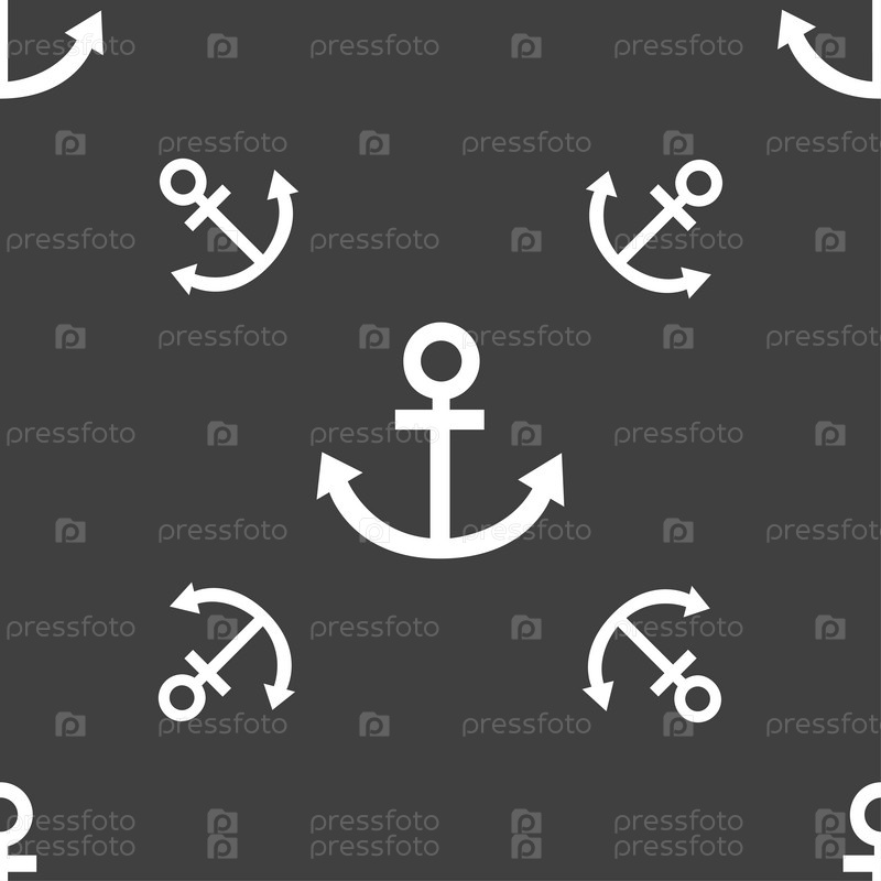 Значок якоря. Бесшовный узор на сером фоне. Вектор