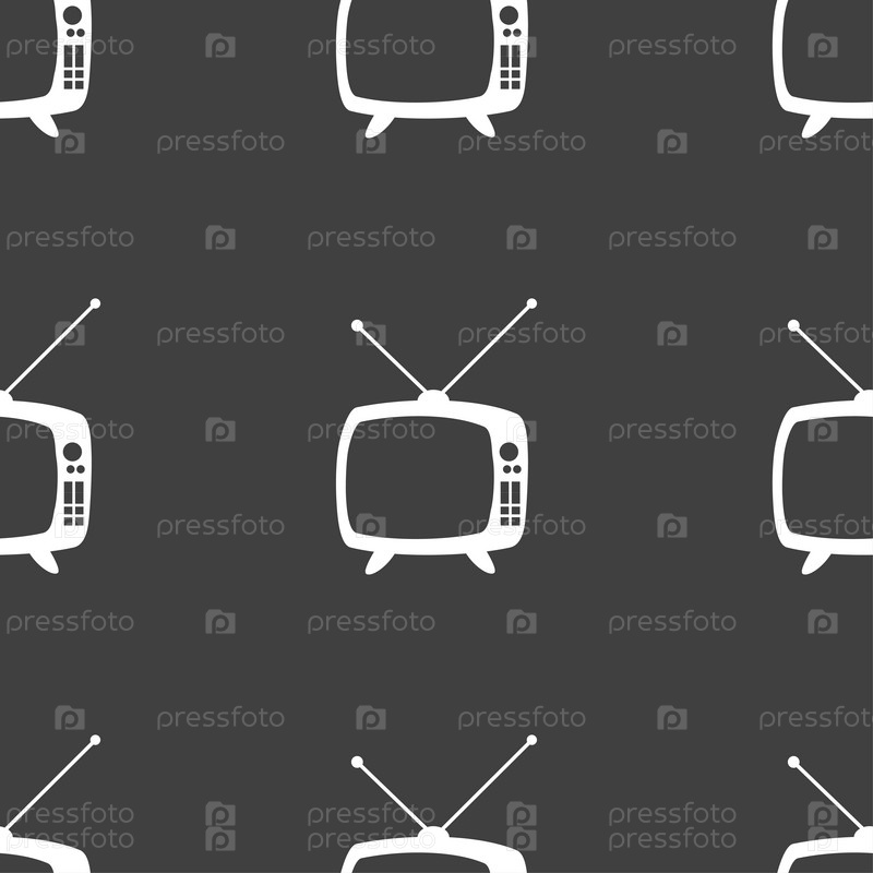 Ретро ТВ режиме знак значок. Символ комплект телевидения. Бесшовный узор на сером фоне. Вектор