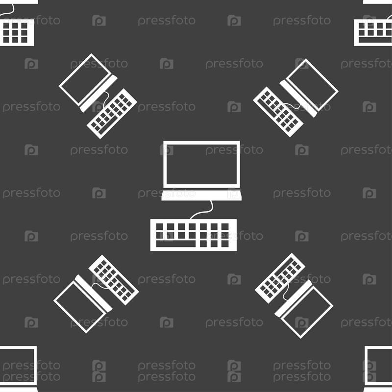 Монитор компьютера и клавиатуры значок. Бесшовный узор на сером фоне. Вектор