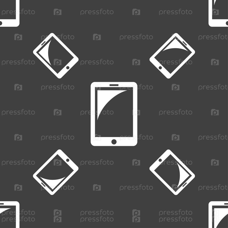 Иконка-планшет знак. смартфон кнопка. Бесшовный узор на сером фоне. Вектор