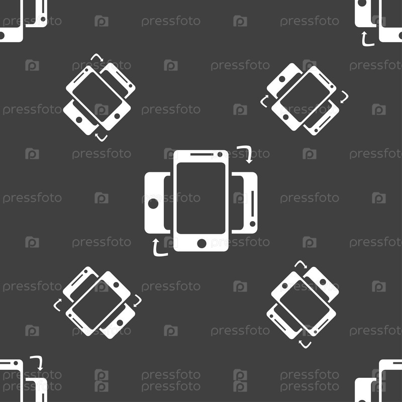 Знак значок синхронизации. Смартфоны синхронизации символ. Обмен данными. Бесшовный узор на сером фоне. Вектор