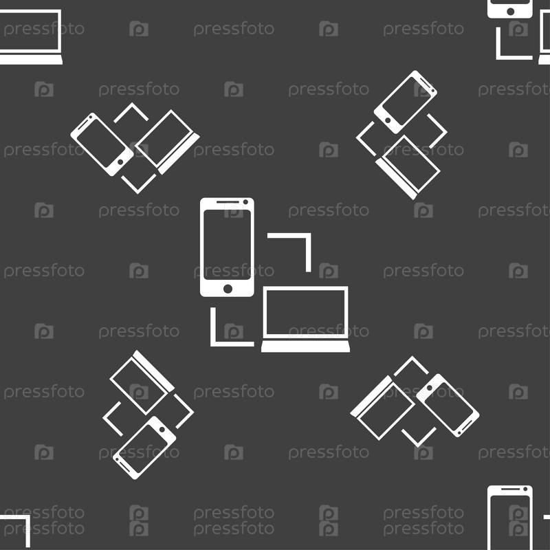 Знак значок синхронизации. коммуникаторы синхронизации символ. Обмен данными. Бесшовный узор на сером фоне. Вектор