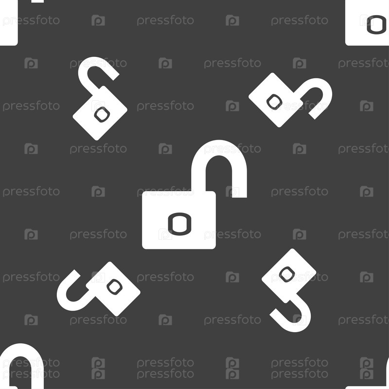 Значок замка знак. Локера символ. Бесшовный узор на сером фоне. Вектор