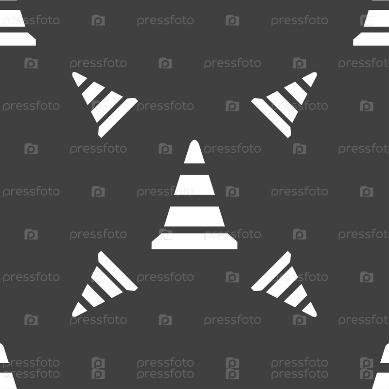 Значок конуса дороги. Бесшовный узор на сером фоне. Вектор