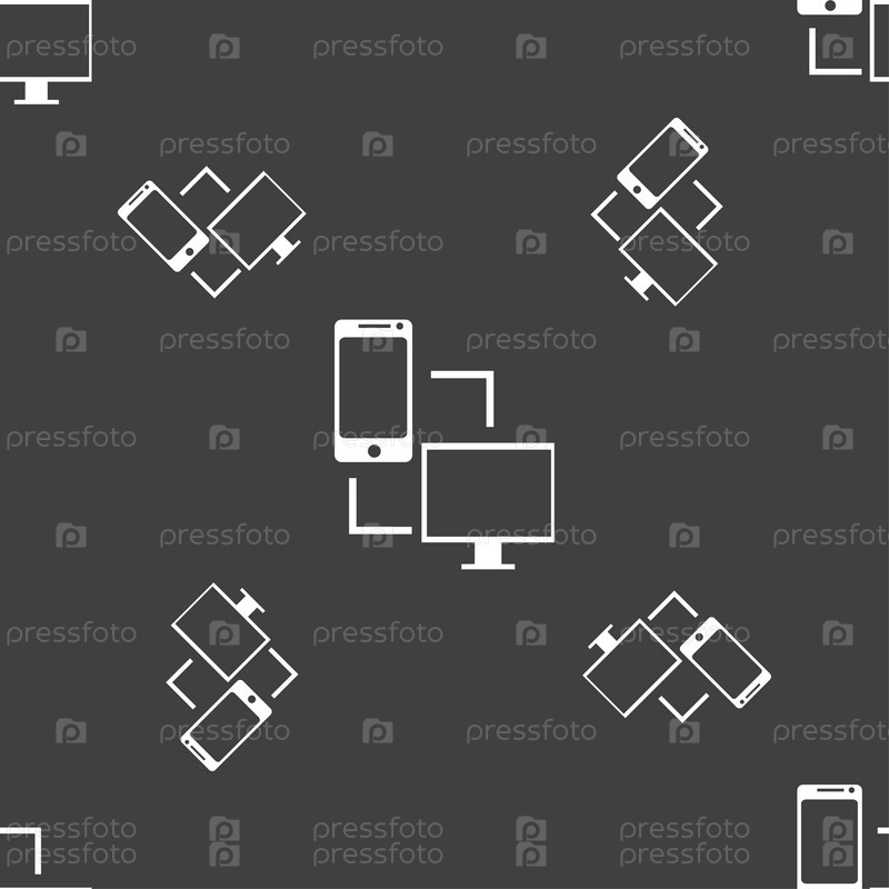 Знак значок синхронизации. коммуникаторы синхронизации символ. Обмен данными. Бесшовный узор на сером фоне. Вектор