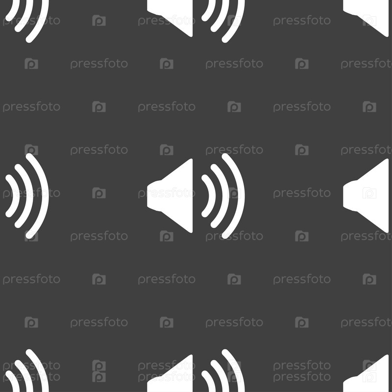 Значок знак громкости динамика. Символ звука. Бесшовный узор на сером фоне. Вектор