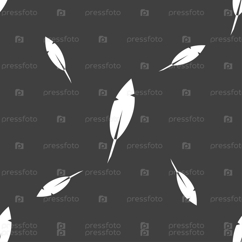 Пером знак значок. ретро пера. Бесшовный узор на сером фоне. Вектор