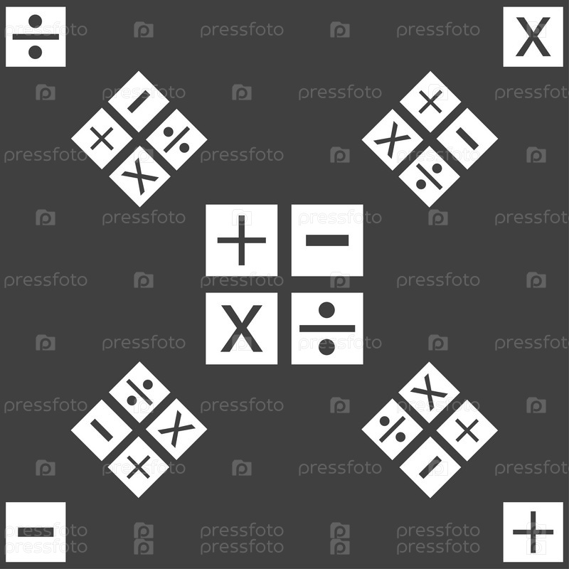 Умножение, деление, плюс, минус значок математике символ математики. Бесшовный узор на сером фоне. Вектор