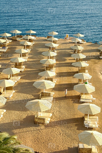 Зонты на пляже Красного моря, Хургада, Египет
