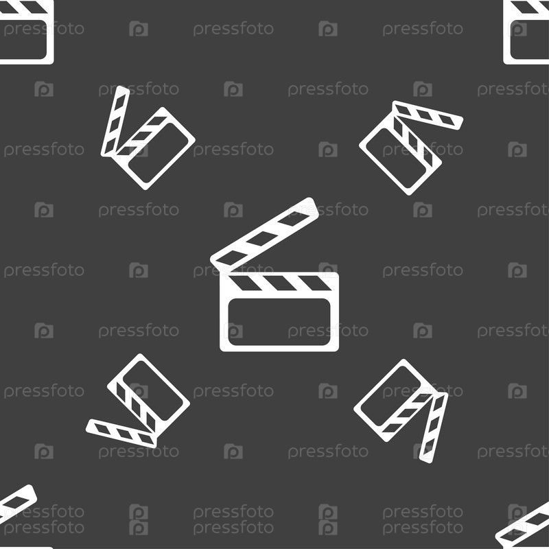 Кино Клаппер знак значок. Видео камеры символ. Бесшовный узор на сером фоне. Вектор