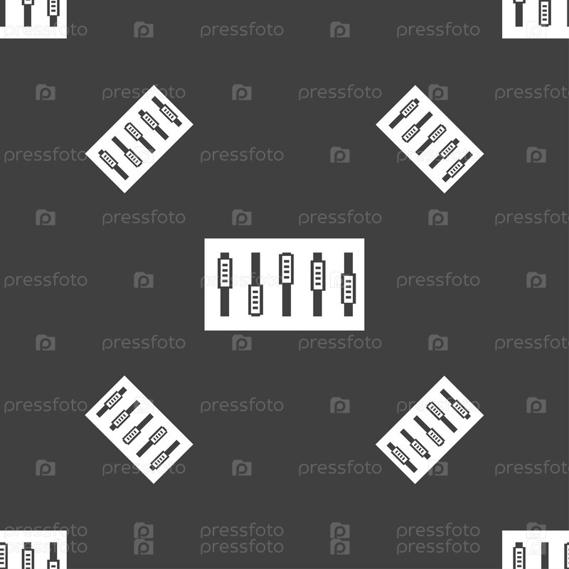 Диджей-консоли микс ручки и кнопки значок символа Бесшовный рисунок на сером фоне Вектор