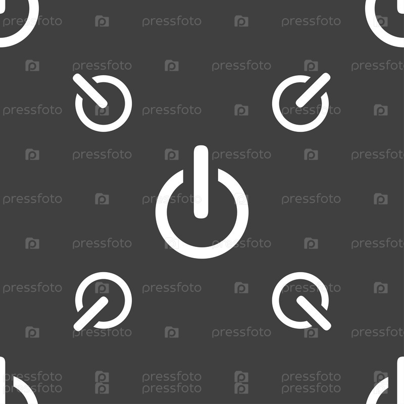 Электропитание знак. Символ переключателя. Бесшовный узор на сером фоне. Вектор