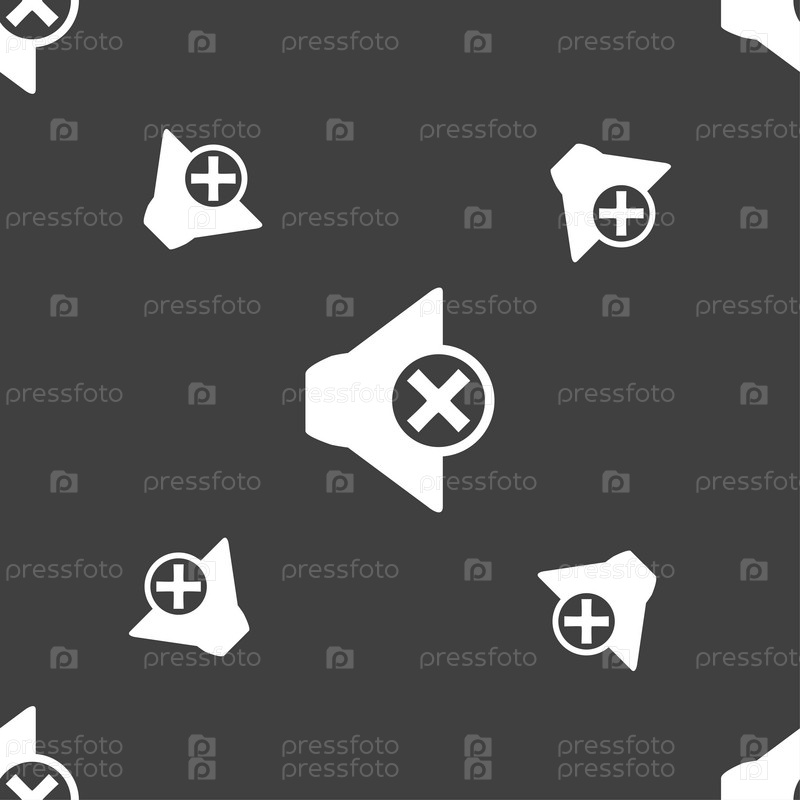 Значок звука динамика знак. Символ звука. Бесшовный узор на сером фоне. Вектор