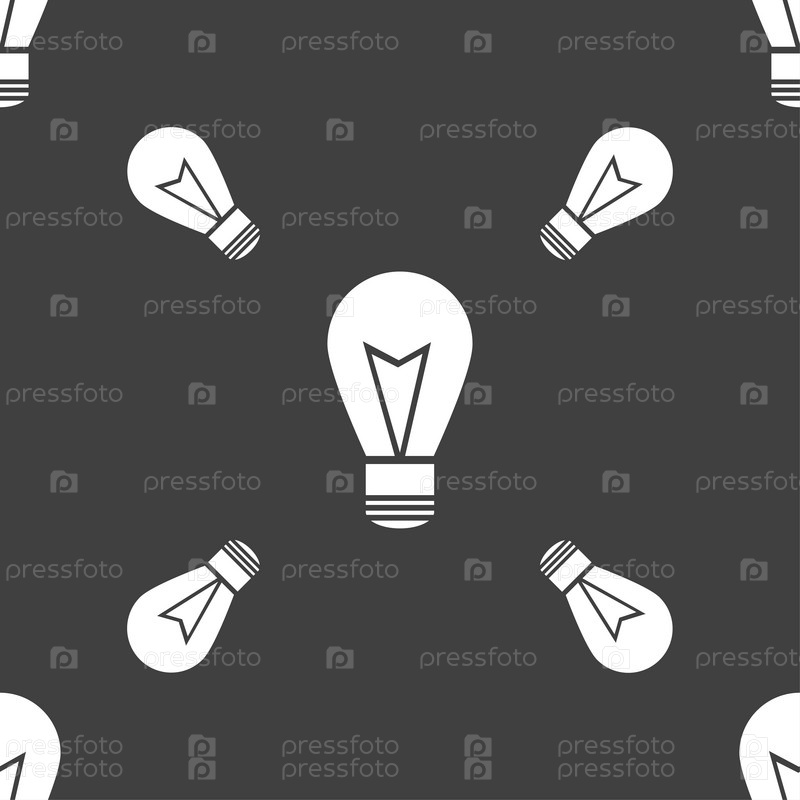Свет лампы знак значок. Бесшовный узор на сером фоне. Вектор