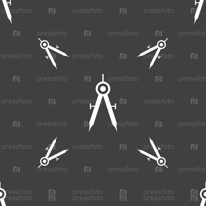 Математические компас значок «подпись». Бесшовный узор на сером фоне. Вектор