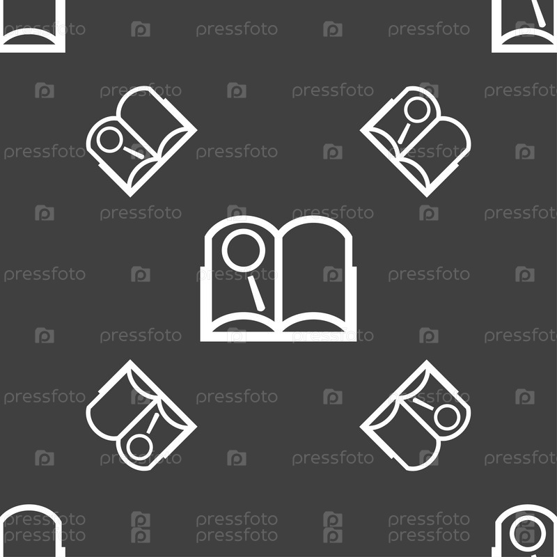 Знак значок книги. Открытая книга символ. Бесшовный узор на сером фоне. Вектор