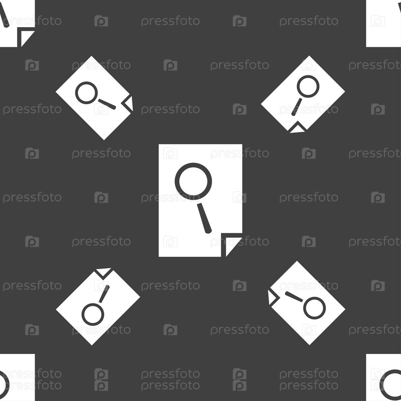 Поиск в знак значок файла. Найти символ документа. Бесшовный узор на сером фоне. Вектор