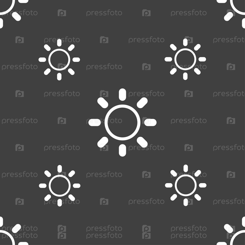Яркость значок знак. Бесшовный узор на сером фоне. Вектор