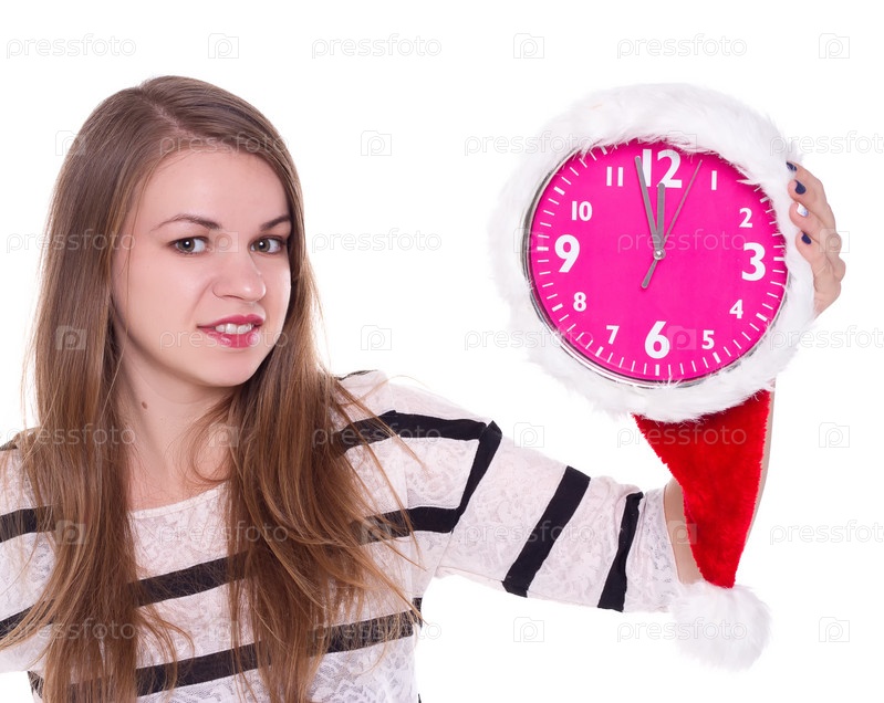 Портрет девушки Санта с часами