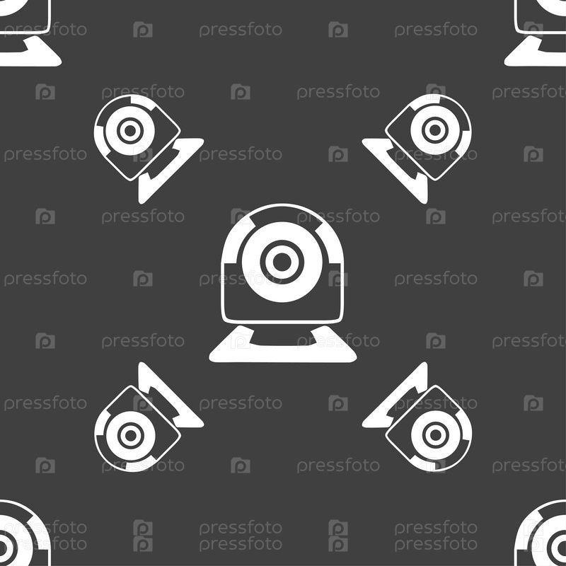 Иконка веб-камера знак. Веб видео чат символ. Камера чат. Бесшовный узор на сером фоне. Вектор