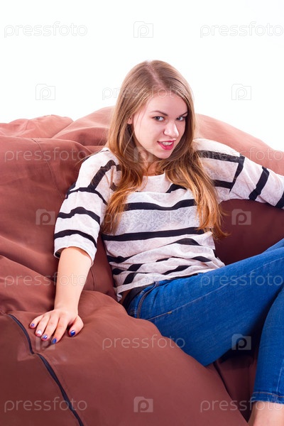 Девочка сидит на кресле