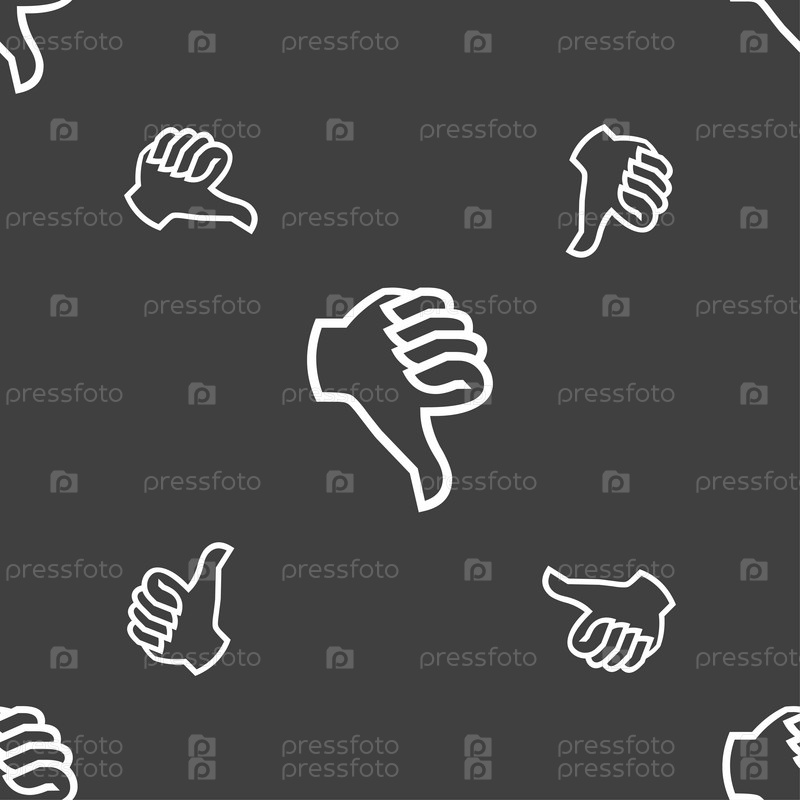 Не нравится значок знак. Большой палец вниз. Палец руки вниз символ. Бесшовный узор на сером фоне. Вектор