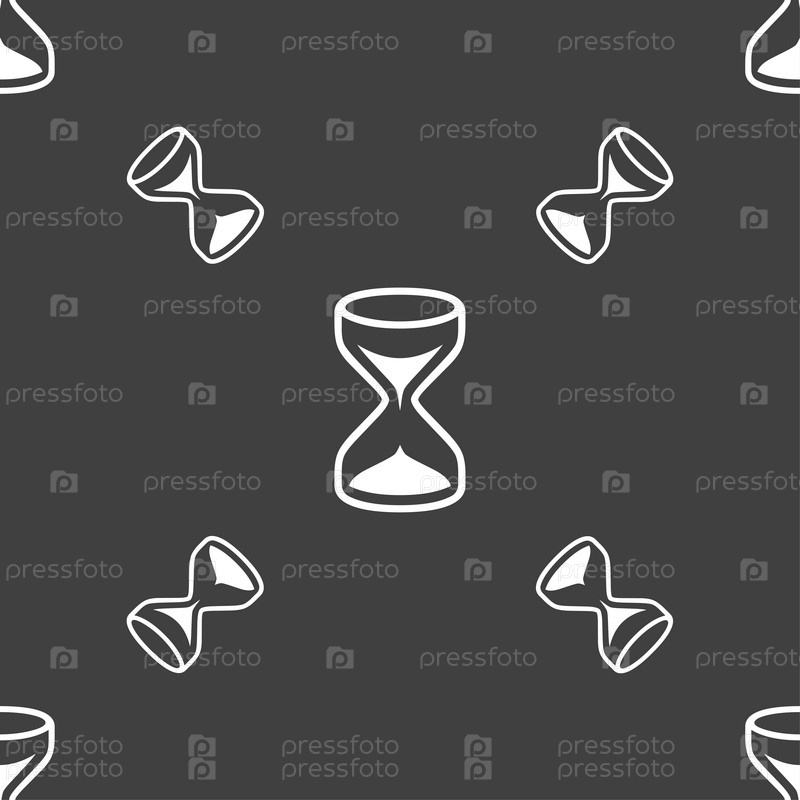 Значок песочных часов знак. Символ песка таймера. Бесшовный узор на сером фоне. Вектор