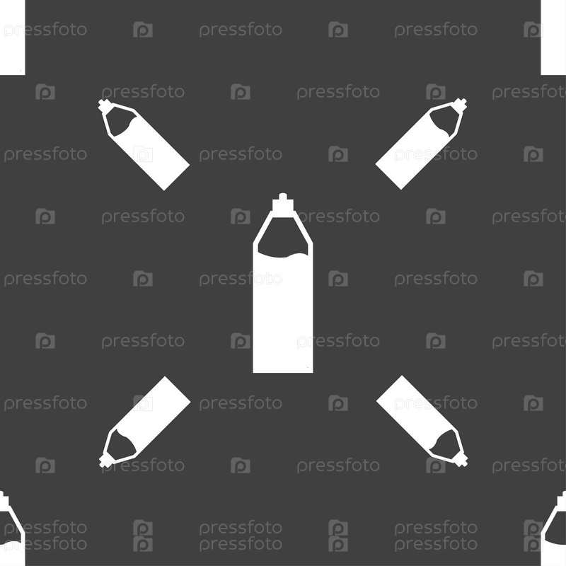 Пластиковая бутылка с напитком значок знак. Бесшовный узор на сером фоне. Вектор
