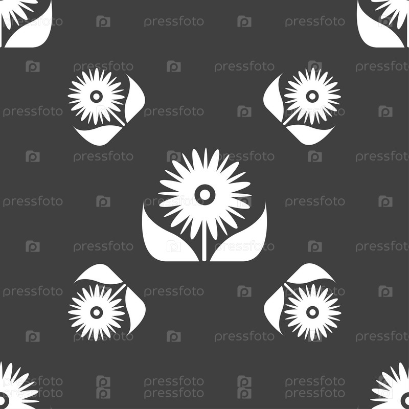 Букет цветов с лепестками значок знак. Бесшовный узор на сером фоне. Вектор