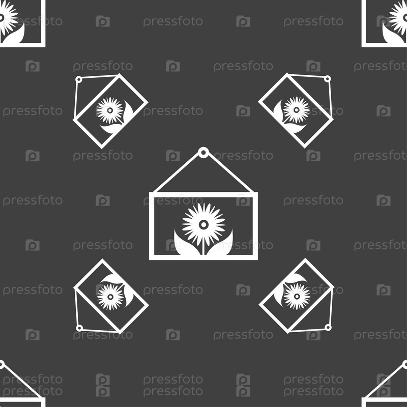 Рамка с цветок значок знак. Бесшовный узор на сером фоне. Вектор