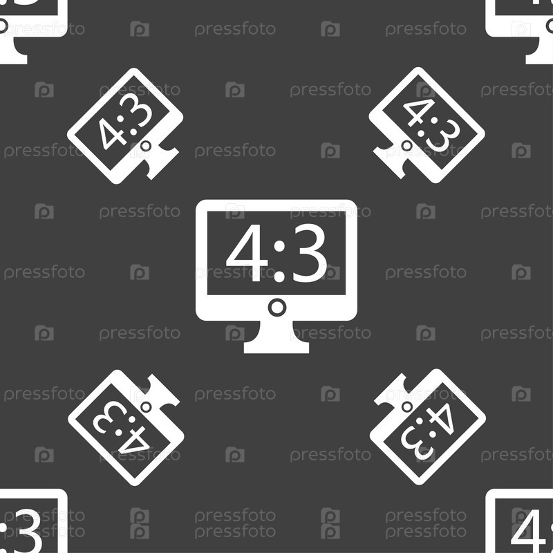 Пропорции 4 3 широкоформатный ТВ значок знак. Бесшовный узор на сером фоне. Вектор