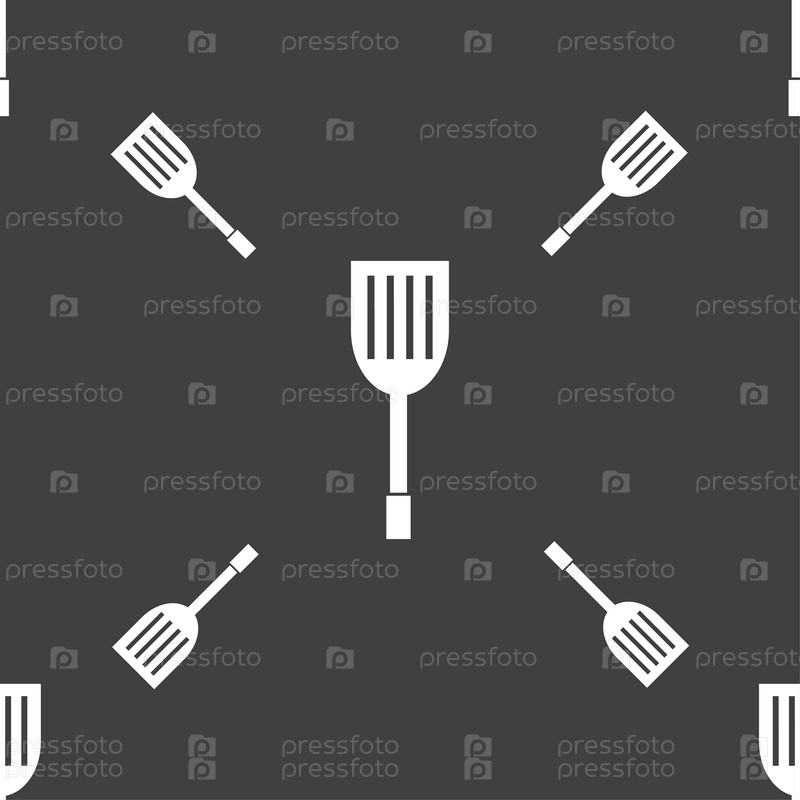 Кухонные приборы значок знак. Бесшовный узор на сером фоне. Вектор