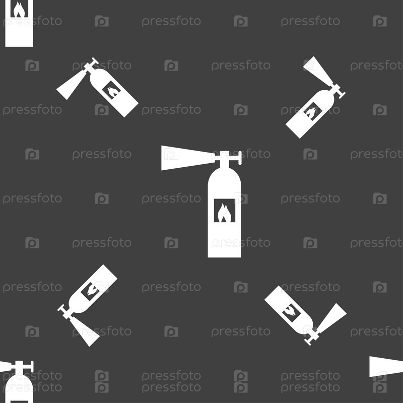 Огнетушитель значок знак. Бесшовный узор на сером фоне. Вектор