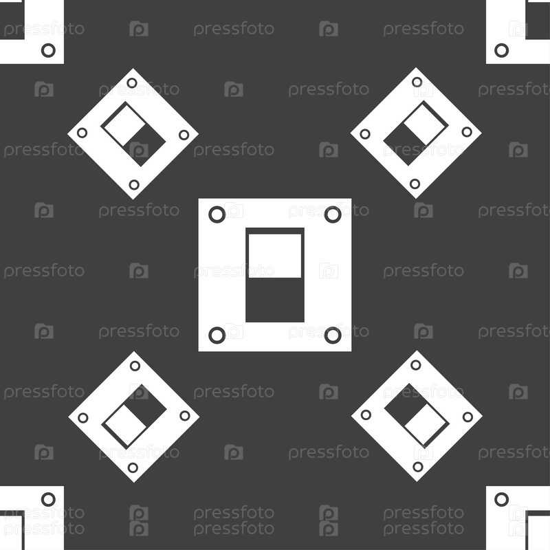 Значок знак выключатель питания. Бесшовный узор на сером фоне. Вектор