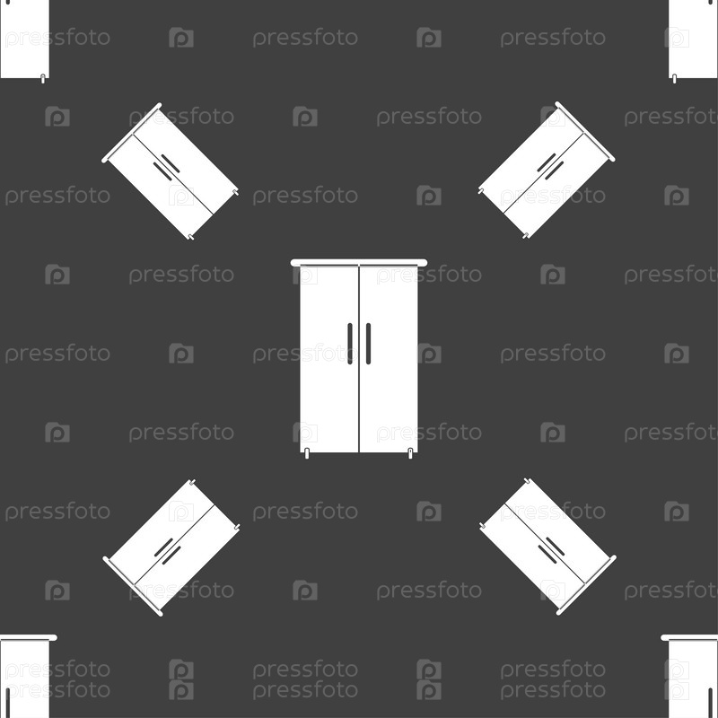 Шкаф значок знак. Бесшовный узор на сером фоне. Вектор