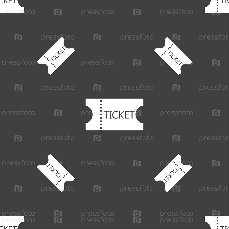 Билет значок знак. Бесшовный узор на сером фоне. Вектор