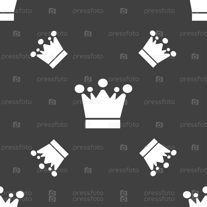 Корона значок знак. Бесшовный узор на сером фоне. Вектор